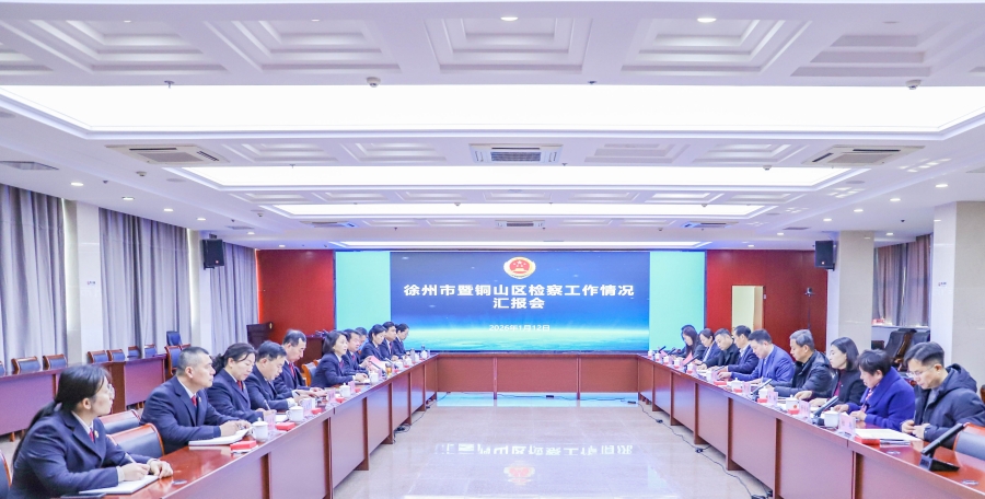 1月12日下午,徐州市暨铜山区检察工作情况汇报会在铜山区检察院召开。徐州市检察院党组成员、副检察长金爱晶向部分驻铜山区市人大代表、市政协委员通报2025年全市检察工作情况。铜山区人大常委会党组副书记、副主任陈光主持会议。铜山区检察院党组书记、检察长明广超,徐州市检察院信息技术部主任王志、侦查指挥办公室主任魏东及铜山区检察院班子成员参加会议。